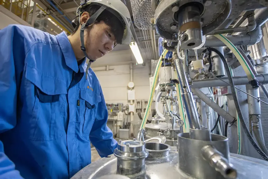 開発は①ラボスケール、②パイロットスケール、③量産の順番で進んでいきます。