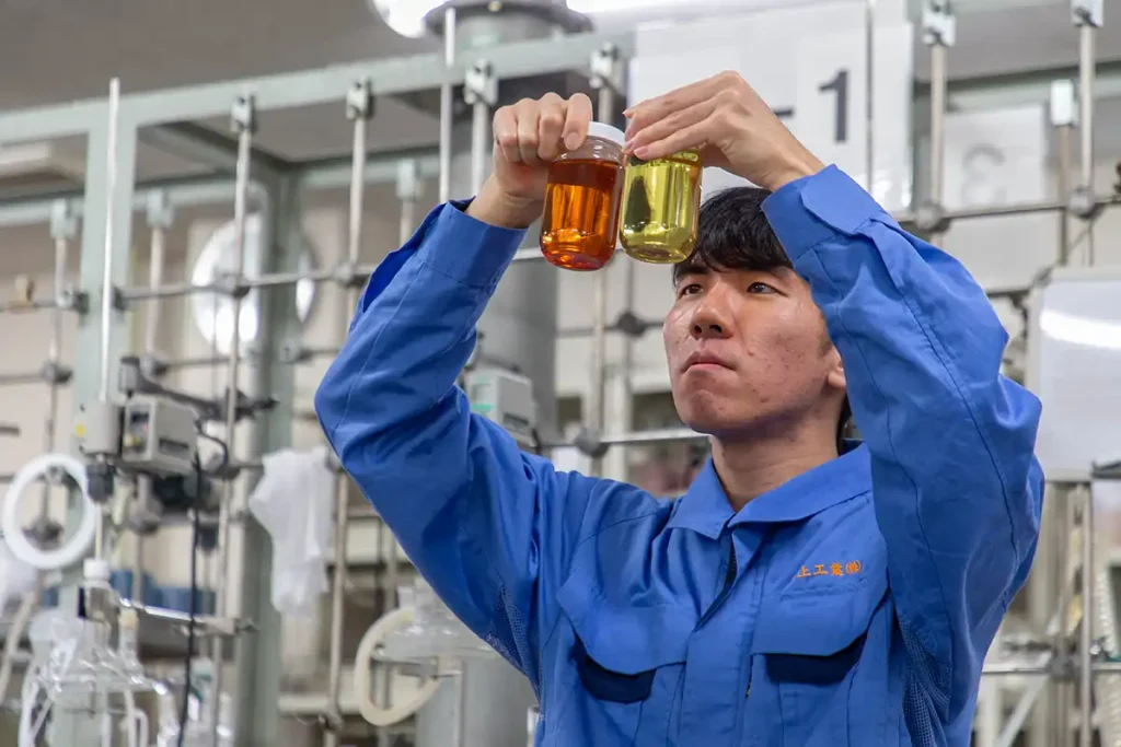 通常、製品は液状なのですが、私がやっているのはパウダータイプの開発。粉状にすることで軽量化し、輸送もしやすくなるからです。