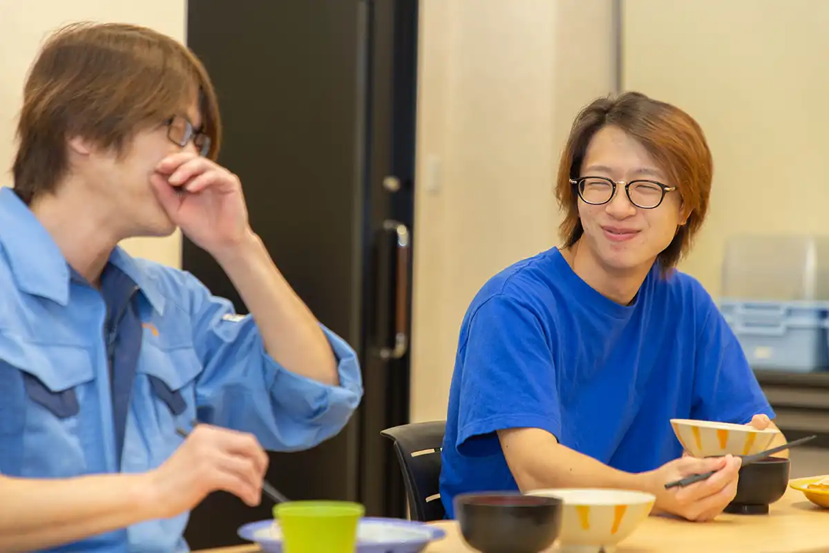 他に見学した工場と比べ、「キレイな工場だな」と思いました。社員食堂などがある厚生棟も充実していて「いいな」と。それに加えて、案内してくれた次長さんも、工場ですれ違う社員の方々も、皆さん気さくに声をかけてこられたり、なにかひと言「突っ込んで」こられるわけです(笑) 「なんだか違うぞ、この会社」って印象でした。